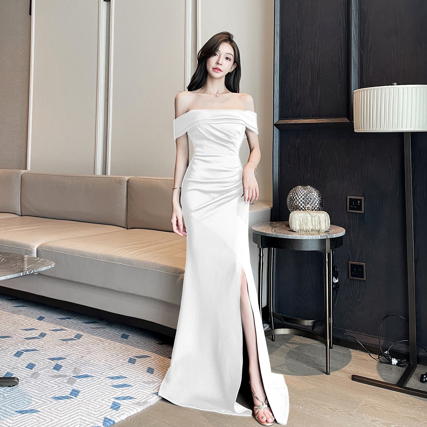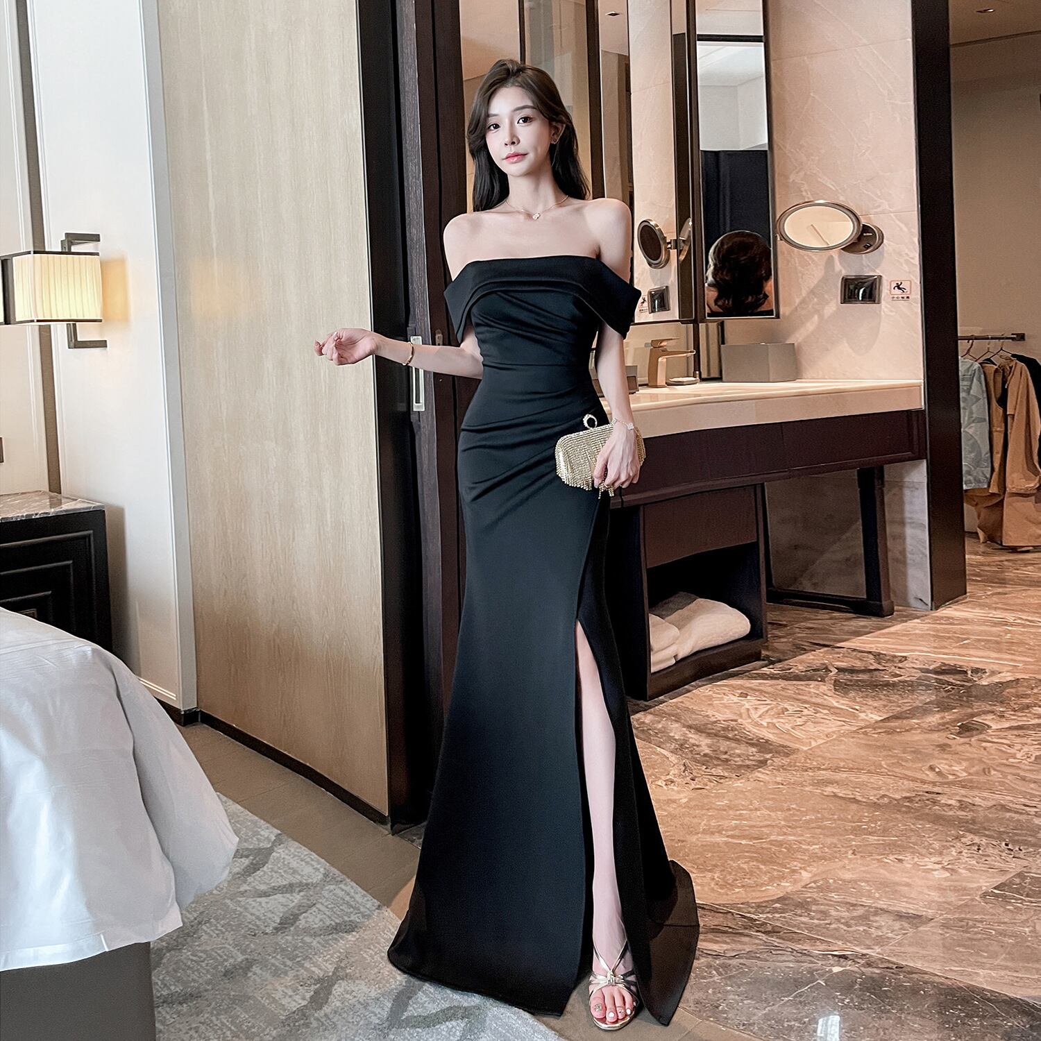 キャバドレス ロング丈 タイト ベアトップ セクシー 谷間魅せ 【No.0015】